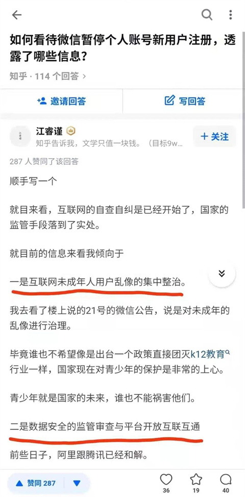 第二是微信团队7月21日曾发布关于开展2021暑期未成年人网络环境专项整治行动。还有近日报道阿里巴巴和腾讯考虑互相开放生态系统,不知道腾讯暂停新的个人用户注册是否与此有关。